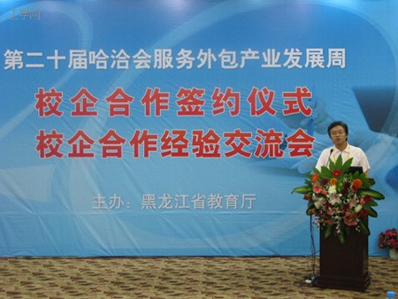 6月16日上午,哈工程bat365中文官方网站院长印桂生在第二十届哈洽会服务外包产业周“校企合作签约仪式暨校企合作经验交流会”上作了“借助校企合作打造特色bat365中文官方网站 创建品牌培训基地”的主题发言。