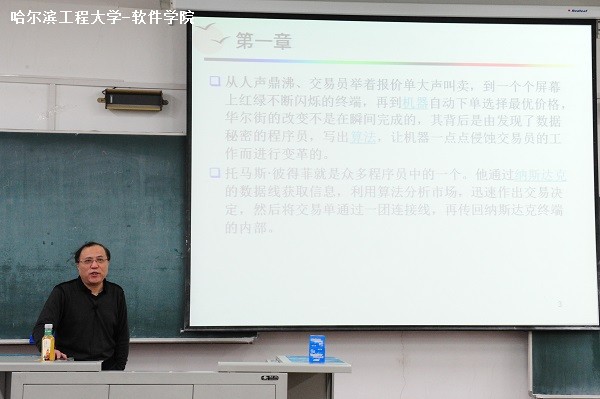 本次讲座主题围绕程序之灵魂――算法展开,黄教授通过《算法帝国》这本书,对2012级学生进行一场算法的科普教学。《算法帝国》是《福布斯》杂志和《芝加哥论坛报》科技专栏特约作者克里斯托弗•斯坦纳的一部作品,本书通过算法应用在金融、医疗、法律、体育、娱乐、外交、文化、国家安全等诸多方面的故事,向读者介绍了算法掌控世界的真实情况,揭示了“机器人革命”是如何悄悄地在我们身边发生的。