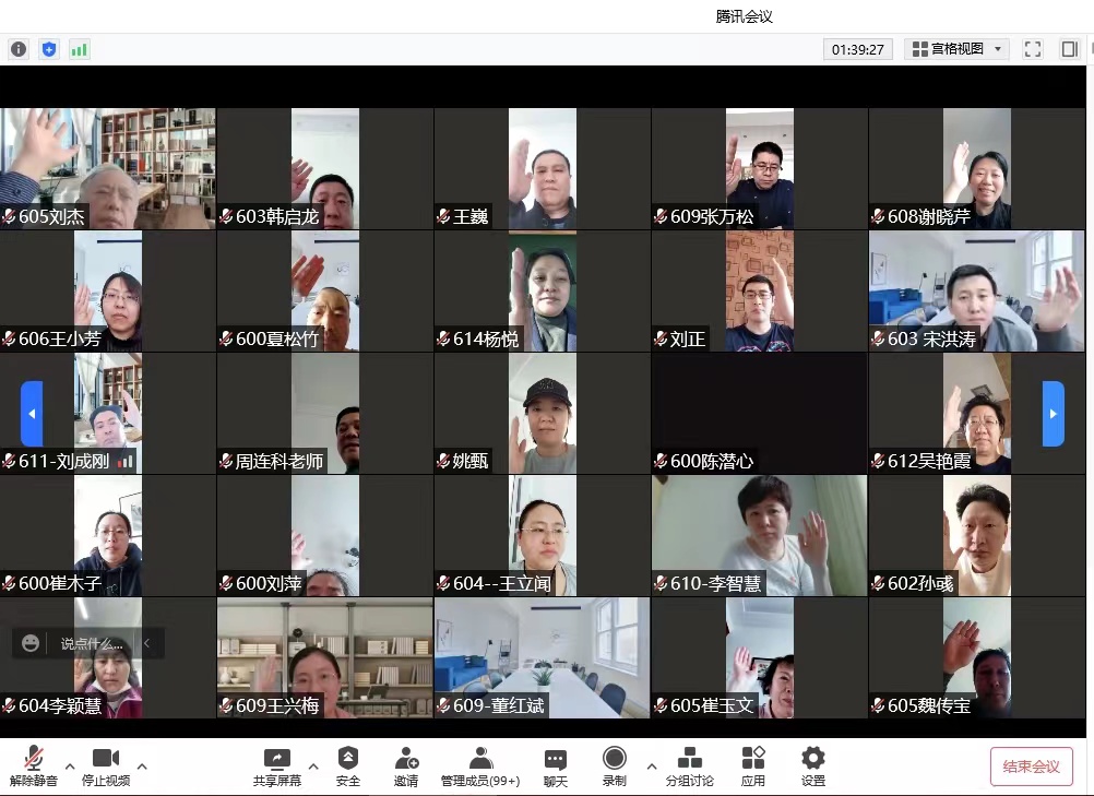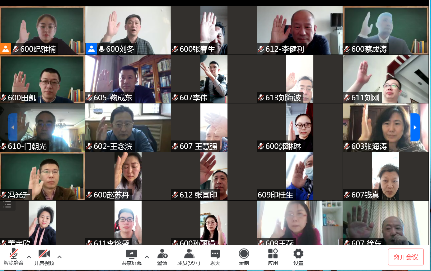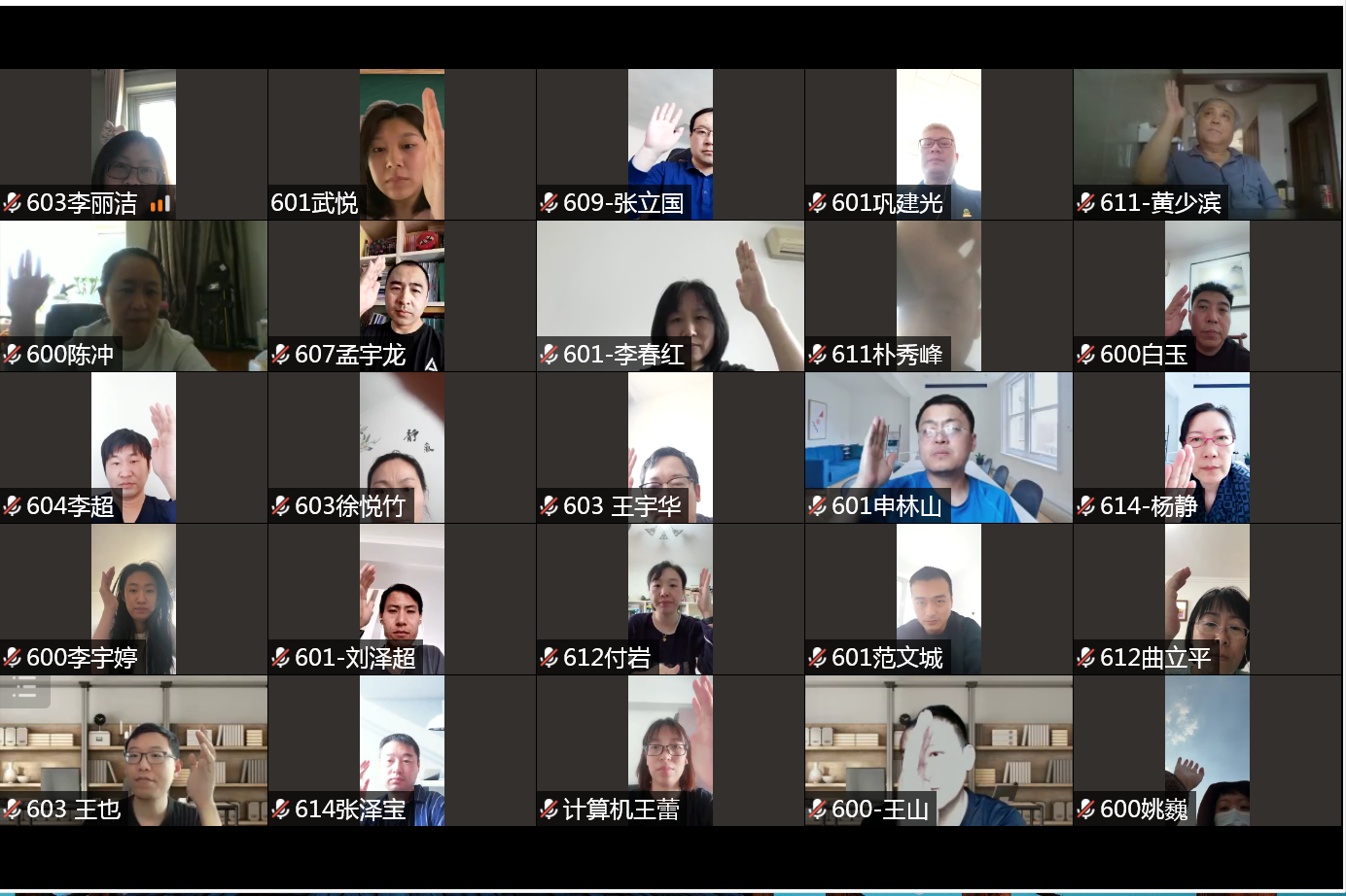 会议最后,全体参会人员开启摄像头已举手表决通过的方式结束与会日程,计算机科学与技术学院2021年度教职工大会圆满落幕。