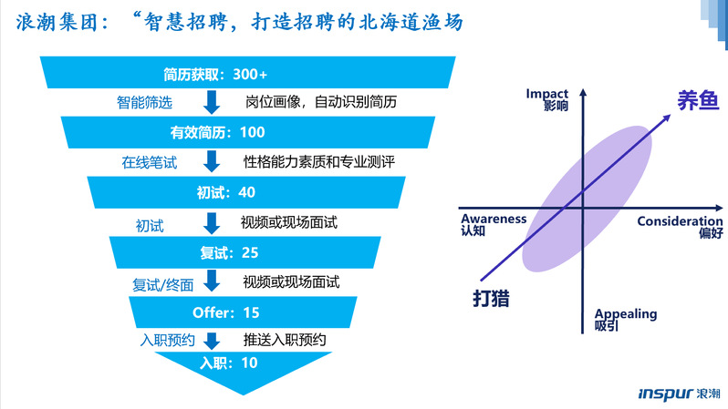 浪潮人力资本咨询专家安瑶以《互联网时代企业人才观》为题,从大型企业的人才招聘和员工发展的角度进行引导发言。她提出,数字化和服务化的新模式已经颠覆了传统的人力资源的管理模式,通过大数据+AI技术的应用,能够面对每年超10万份的简历,并实现最快当天投递简历当天进行面试的抢人才能力。通过人才画像等手段对应聘人员和在职员工进行像CT一样的全方位扫描,从而实现企业人才的盘点,最终帮助企业发现人才、发展人才、留住人才。
