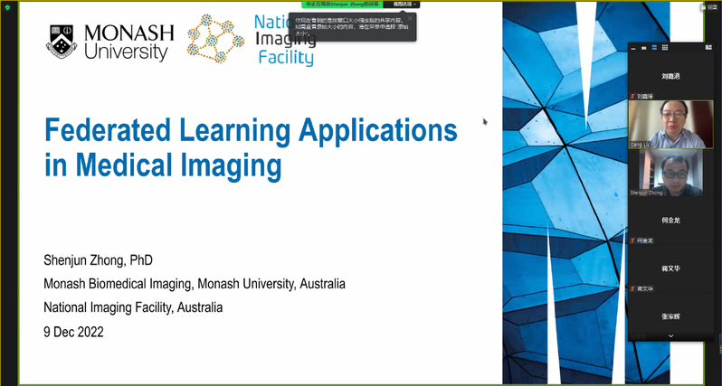 2022年12月9日,计算机科学与技术学院举行了智汇论坛2022年第八期(总第十二期)活动。本次活动邀请澳大利亚莫纳什大学医学影像中心研究员Shenjun Zhong博士以“深度联邦学习在医学影像中的应用”为题作专题讲座。