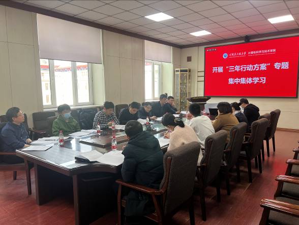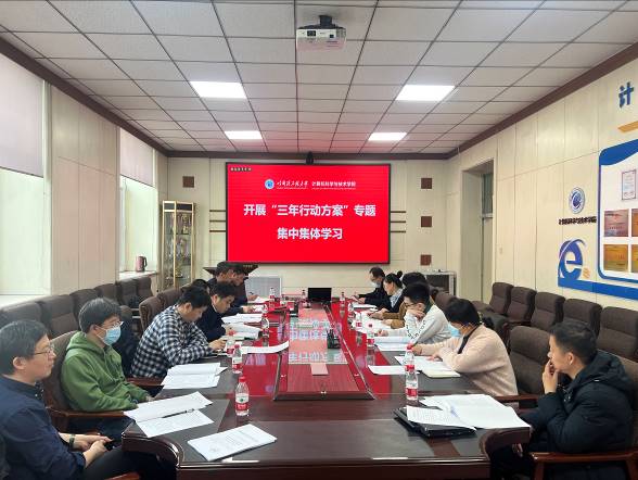 2023年3月8日14时,bat365中文官方网站计算机科学与技术学院就深入贯彻落实学校五个“三年行动方案”相关文件内容,开展集中集体学习交流。学院领导班子成员、基层学术组织负责人及党支部书记参加会议。