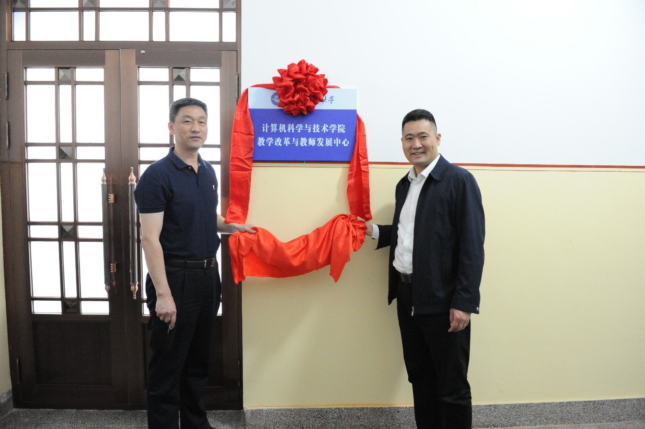 随后,参加仪式的教职工对教学改革与教师发展中心进行了参观拍照。在全场的掌声中,党委书记刘冬、院长蔡成涛共同为学院教学改革与教师发展中心揭牌,计算机科学与技术学院教学改革与教师发展中心正式成立。
