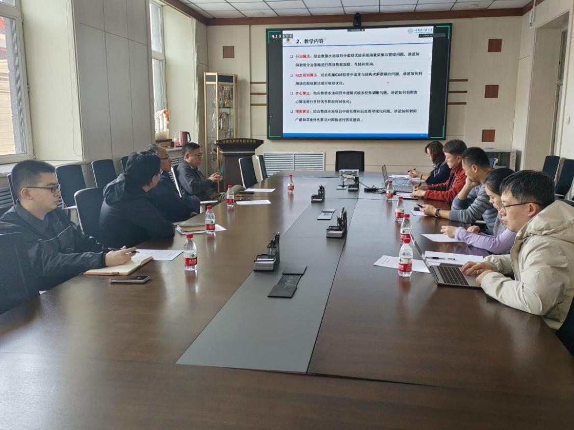 吴艳霞首先讲解会议主题,并初步阐述了我院在人才培养建设方面的战略规划与思路。潘海为、陈志远、王宇华分别就各自所授课程的当前授课模式与内容进行了详尽的汇报。随后,与会人员就相关课程的设计、教学内容以及船舶工业软件案例设计等内容进行了深入的剖析与讨论,从多个角度提出了优化课程结构、合理融入案例等改进建议。印桂生教授提出,特软班旨在培养船舶工业软件复合型人才,授课教师需重组课程内容,加深课程深度,以提高学生的综合素质。张国印教授建议,课程改革是提升教学质量、培养高素质人才的关键环节,授课教师应紧跟时代前沿,及时更新授课内容,保持课程鲜度。
