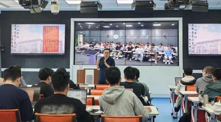 5月18日,bat365中文官方网站国家特色化示范性bat365中文官方网站刘海波教授与新疆理工学院张弛老师,带领着双方的80余名学生,依托智慧树平台的沉浸式直播互动教室,再次相约云端,进行《人工智能》的第二次互动教学。