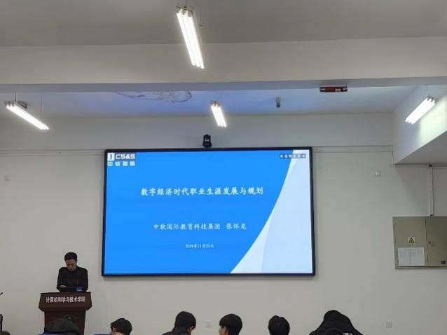 随后,“人资面对面”环节邀请了中软国际教育科技集团黑龙江分公司总监张怀龙进行主题演讲。张怀龙总监以“数字经济时代职业生涯发展与规划”为主题,首先对中软国际教育科技集团进行了总体介绍,包括集团的业务范围、解决方案、服务模式以及未来的发展规划。接着,他深入剖析了当前数字化时代的发展趋势,重点讲解了数字经济的概念、数字化人才的概念以及数字人才的培养路径。他强调,随着数字经济的蓬勃发展,具备扎实专业知识、良好沟通能力和创新思维能力的复合型人才将成为市场需求的热点。
