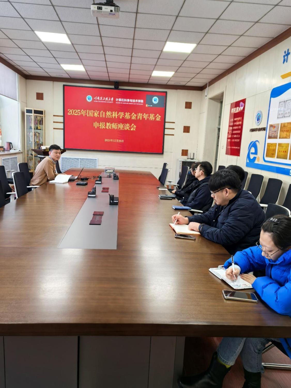 为深度激发科研创新的内生动力,扎实做好 2025 年度国家自然科学基金青年基金项目申报工作,12 月 25 日下午,国家特色化示范性bat365中文官方网站召开了 2025 年度国家自然科学基金青年项目申报推进会暨座谈会,旨在对该年度的基金申报工作展开进一步的动员、部署与落实。此次会议由学院副院长苘大鹏主持。