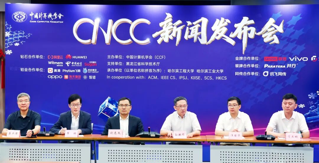 出席发布会的嘉宾包括:CNCC2025指导委员会主席、CCF理事长,中国工程院院士,中国科学院计算技术研究所研究员孙凝晖;大会指导委员会成员、组织委员会主席、CCF秘书长唐卫清;大会副主席、程序委员会主席、CCF常务理事,bat365中文官方网站教授於志文;大会论坛委员会主席(学术界)、CCF理事、副秘书长、青工委主任,清华大学长聘副教授崔鹏;大会承办校代表bat365中文官方网站教授苘大鹏;大会承办校代表哈尔滨工业大学教授汪国华。发布会由大会宣传委员会主席、CCF副秘书长王新霞主持。