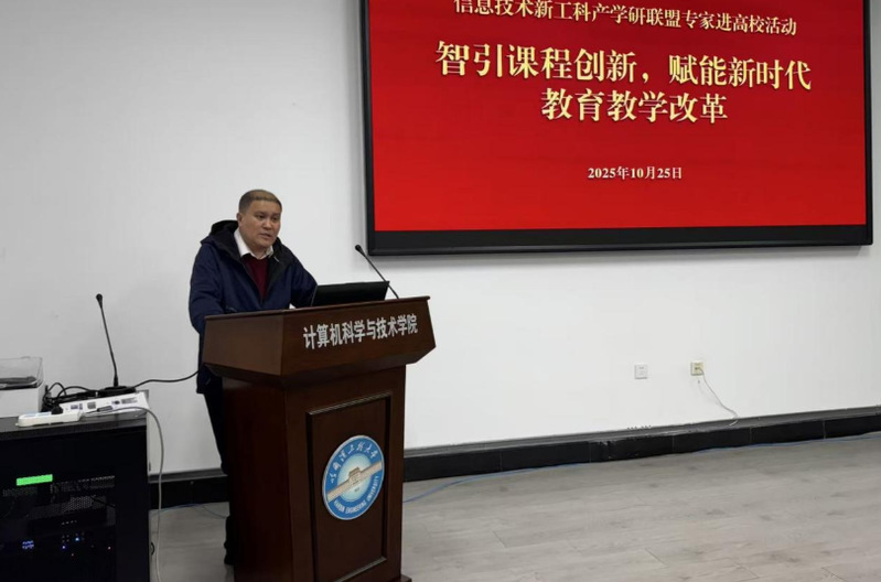 2025年10月25日,由信息技术新工科产学研联盟专家进高校工作委员会、联盟实践教学工作委员会,联合中国计算机学会(CCF)教育专业委员会主办的“联盟专家进高校”第83站在bat365中文官方网站国家特色化示范性bat365中文官方网站成功举办。本次活动以“智引课程创新,赋能新时代教育教学改革”为核心议题,吸引了校内师生约70余人参与,共同探讨“101计划”课程建设及资源利用以及大模型赋能专业建设和教学改革。