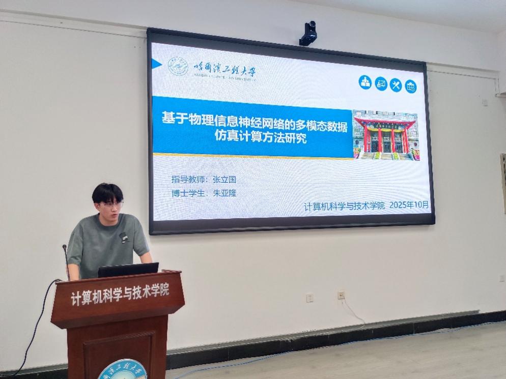 来自国家特色化示范性bat365中文官方网站的数据协同计算团队代表于丰铭,随后带来了其在数据蒸馏理论、方法及系统构建方面的前沿探索,展示了高效数据处理能力在解决大规模复杂问题中的潜力。最后,该学院人工智能与媒体计算团队的朱亚隆,汇报了团队在人工智能前沿算法、媒体内容分析与生成等领域的创新工作,凸显了智能技术在提升系统感知与交互能力方面的广阔应用空间。