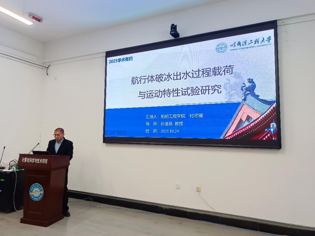 船舶工程学院流固耦合技术研究团队的徐润泽首先登场,就其团队在流固耦合机理、数值模拟及工程应用等方面的研究进展进行了汇报,展现了基础研究与工程实践的紧密结合。紧接着,该学院舰船抗爆与水下发射技术“兴海”学术团队的付志强,围绕舰船结构抗爆防护与水下发射关键技术等挑战性课题,介绍了团队取得的创新成果与未来研究方向。